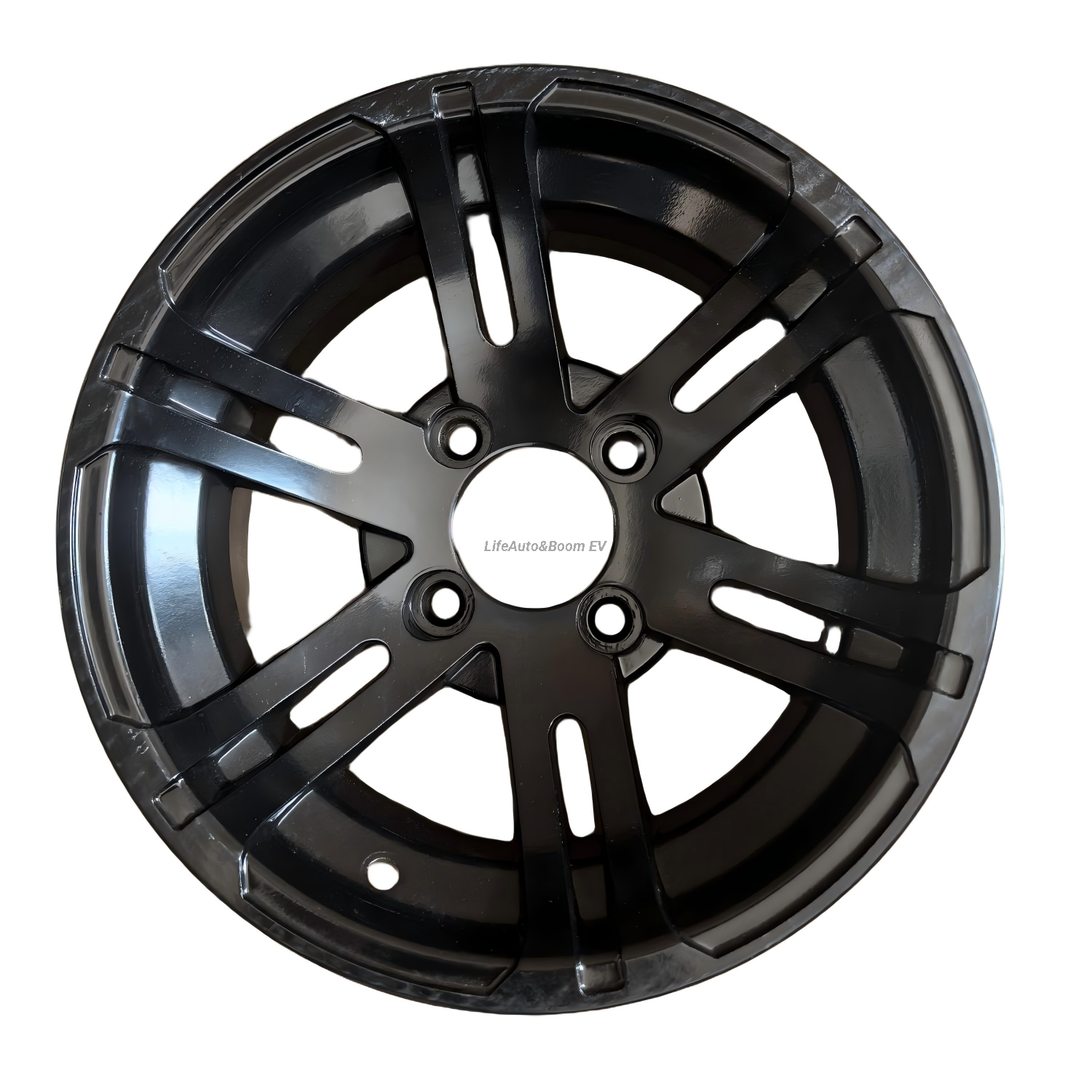 This 12-inch golf cart wheel hub is a high-performance aftermarket component designed specifically for golf carts, ATVs, and other recreational vehicles. Crafted from forged aluminum alloy (some models use low-pressure precision casting aluminum alloy), it meets international TRA rim standards and ISO9002-2000 quality certifications. With a standard specification of 12×7J (12-inch diameter, 7-inch width), it is compatible with mainstream golf cart models such as Club Car, E-Z-GO, and Yamaha, making it an essential upgrade for enhanced vehicle handling and safety.