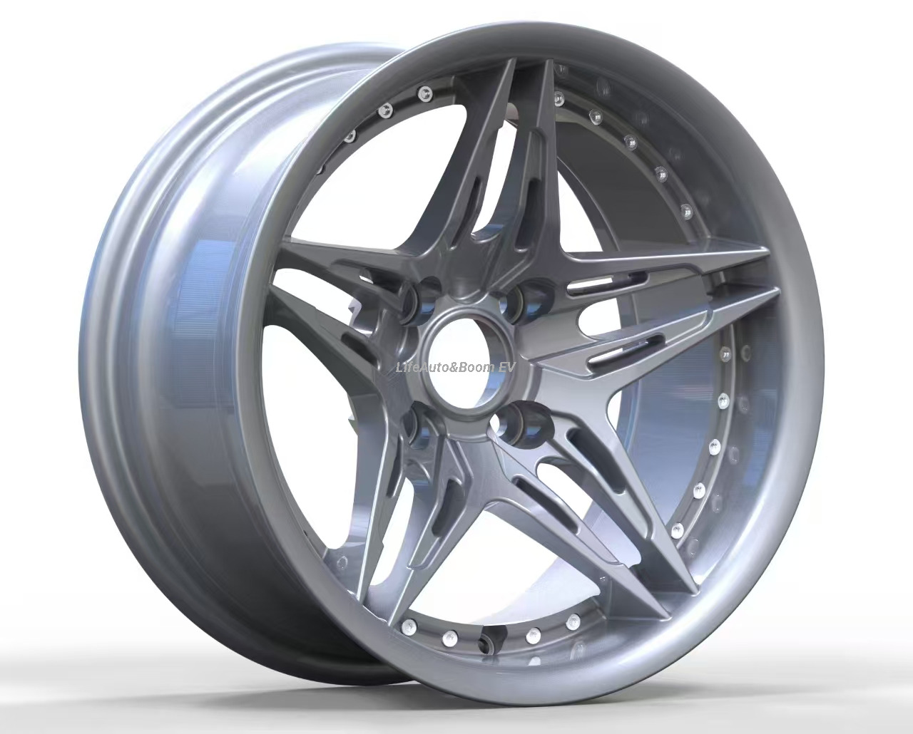 This golf cart wheel features a high-gloss chrome plating finish, delivering a mirror-like, brilliant luster. Its meticulously crafted multi-spoke design perfectly blends classic metallic appeal with a modern, technological feel. The wheel boasts an exceptionally smooth texture and premium feel, endowing the golf cart with an extraordinary sense of luxury and sportiness, and instantly elevating the vehicle's visual grade and charm.