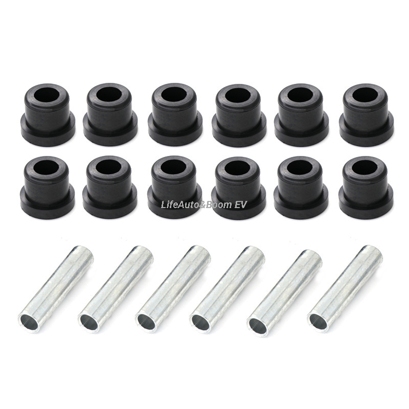 Club Car Front & Rear Leaf Spring Bushing Kit — 12 Rubber Bushings (1015583) + 6 Metal Sleeves (1012303)
